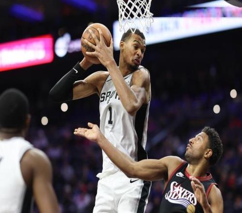 全场34次三分出手仅命中9球,除文班亚马外,仅有瓦塞尔和卡斯尔得分上双,球队整体表现难言理想。而76人上场比赛同样被凯尔特人终结连胜,33胜27负的战绩位列东部第六!恩比德上一场缺阵,马克西空砍33分6助攻,埃奇库姆拿到23分,其余球员表现平平。德拉蒙德中规中矩贡献10分12篮板,巴洛有14分8篮板入账,乌布雷10投仅2中,替补席四人合计仅得14分。目前 76 人阵容深度一般,乔治被禁赛,恩比德打打停停,确实伤害球队。此役,恩比德继续缺阵,赛前,美媒ESPN预测本场比赛,马刺胜率62.9%,76人胜率37.1%。首节比赛开打,首节马刺依靠团队进攻逐步压制残阵76人,马刺单节22投11中,命中率达到五成,三分11投3中。文班亚马虽无运动战出手,但依靠罚球2中2得到2分,另有3篮板1助攻4盖帽,防守端威慑明显;哈珀5投4中砍下11分,福克斯贡献5分5助攻。76人28投9中,三分11投5中,马克西7投2中得到8分5篮板2助攻,埃奇库姆6投1中仅得2分。首节战罢,马刺32-25领先76人。